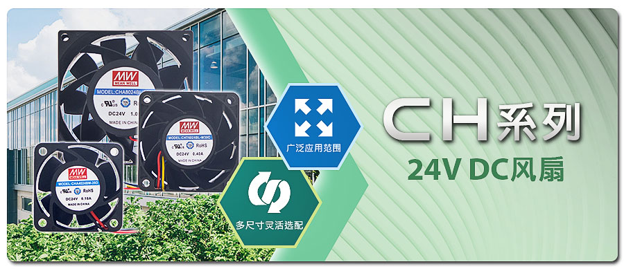 為因應更多元應用場域的電壓需求,聯源精密在既有12V DC風扇產品線的基礎上,正式推出明緯品牌24V DC風扇 — CH系列。