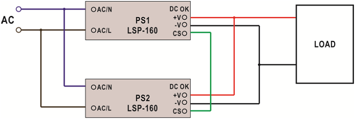 以下為針對冗余應用的簡短說明:傳統冗余電源接法是由2個或多個電源于正端分別串接二極管的方式并聯輸出至電源總線上,如圖二所示??梢宰?個電源單獨工作,也可以讓多個電源同時工作。當其中1個電源出現故障時,由于二極管的單向導通特性,不會影響電源總線的輸出。