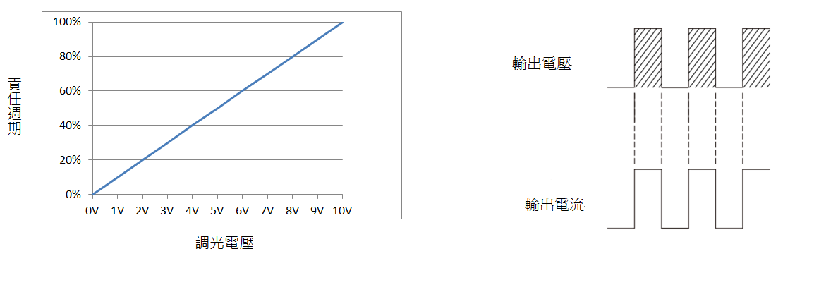 圖一 PWM調光控制與輸出電流曲線