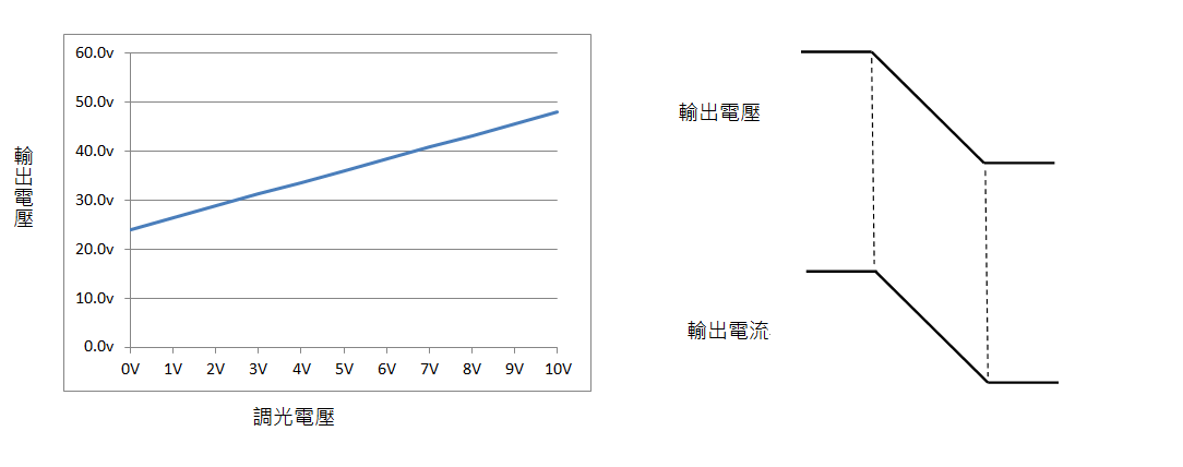 圖二 線性電壓調光與輸出電流曲線
