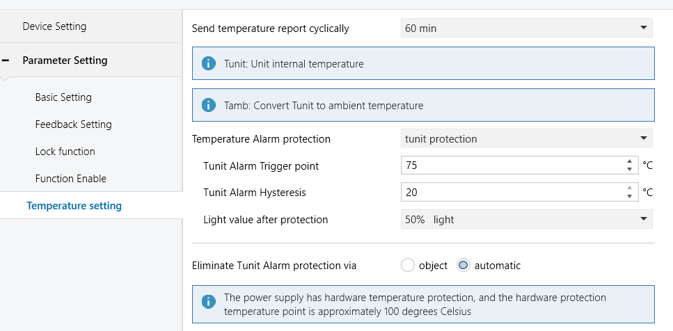 該功能透過記錄 LED 驅動的輸出功率和效率,推算出在 10 分鐘至 1 周內的能耗情況,并將數據回饋給 KNX 系統管理端,幫助用戶優化能源預算。