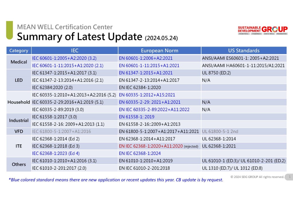 2024明緯安規標準更新動態